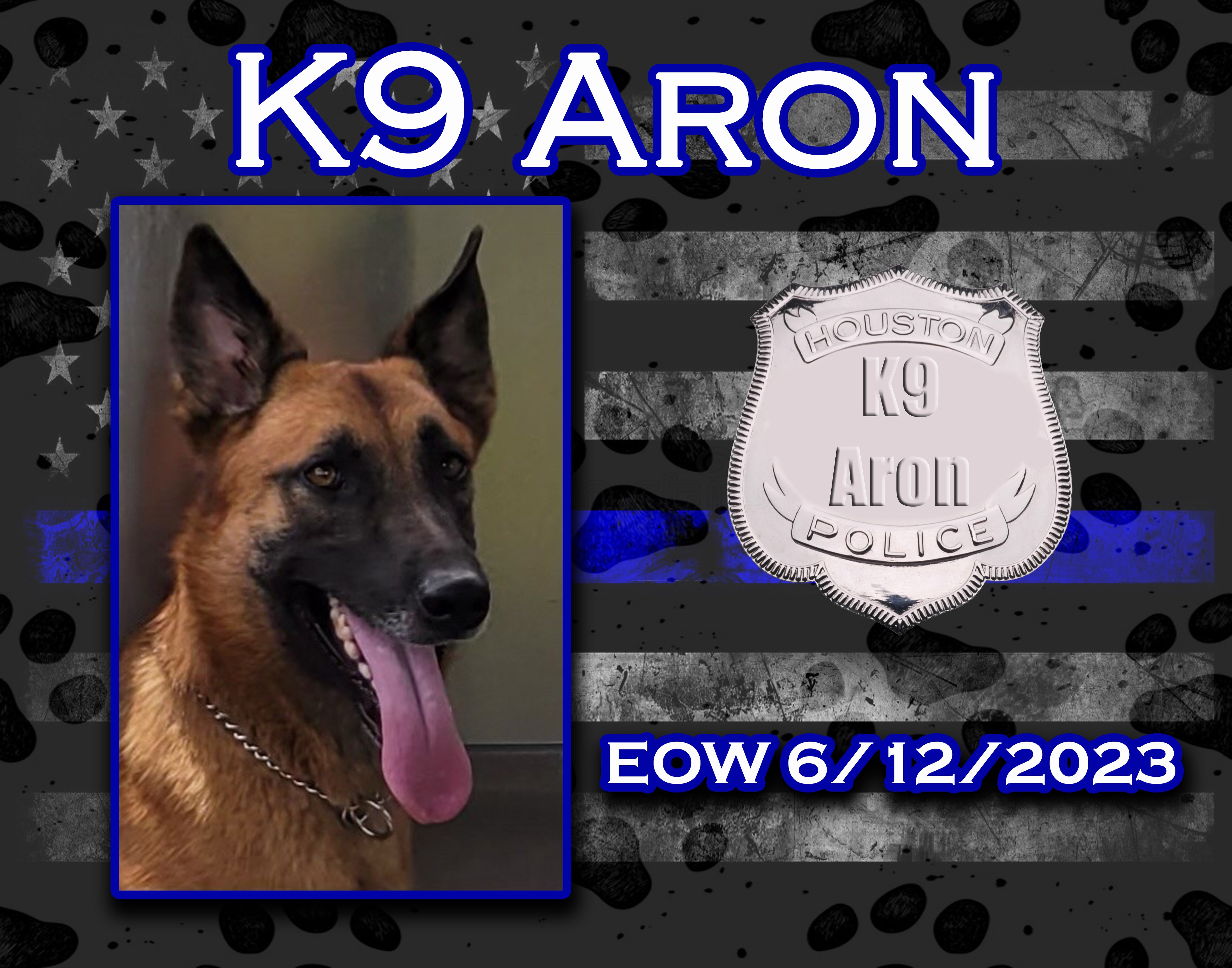 K9 Aron was an explosives detection canine and had served with the Houston Police Department for 1-1/2 years.