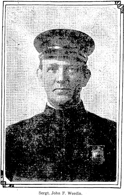 Sergeant Weedin had served with the Seattle Police Department for 23 years. He was survived by his wife, four sons, and four daughters and is buried at Oak Lake Cemetery, Washelli Cemetery, Seattle, Washington.