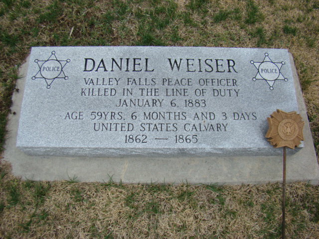 Constable Weiser was survived by his wife and seven children. He was a Union Civil War Veteran who served as a private with the 11th Kansas Infantry, Company I. On October 21, 1864, he was wounded in action outside Independence, Missouri, in the "Battle of Little Blue", a battle between 2000 Union soldiers and 8500 Confederates. He recovered and served until the end of the war.