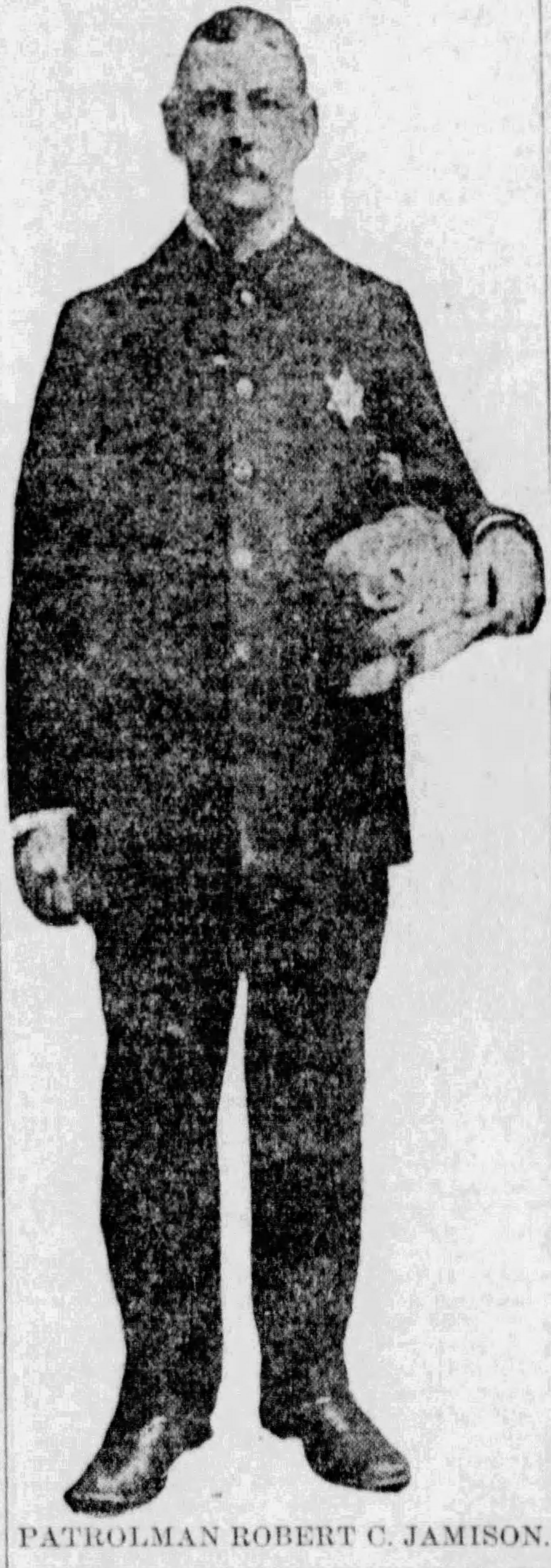 Patrolman Robert Jameson was shot and killed after responding to assist another officer in arresting an armed suspect on Mosby Street near Quinby Street (the modern-day area of St. Jude Place).