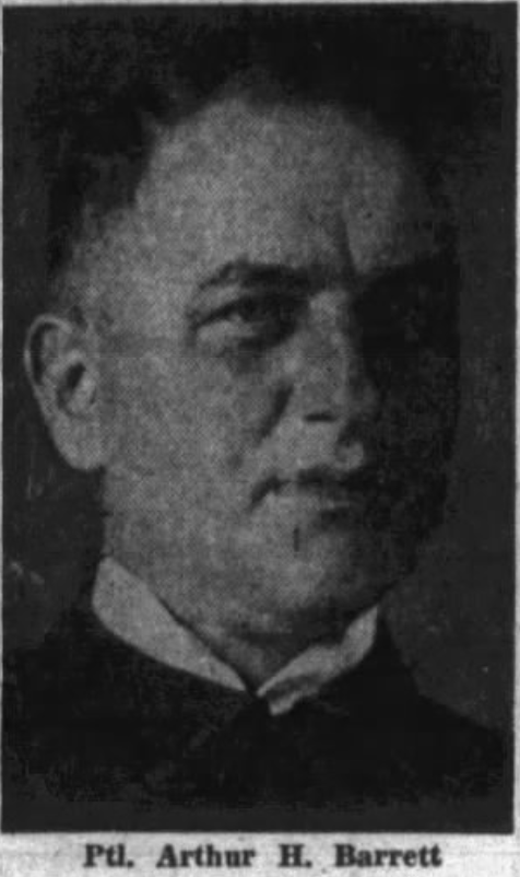 Officer Arthur Barrett suffered a fatal heart attack that had been triggered by an injury he sustained to his hand one month earlier while handling a prisoner in the First Precinct station.