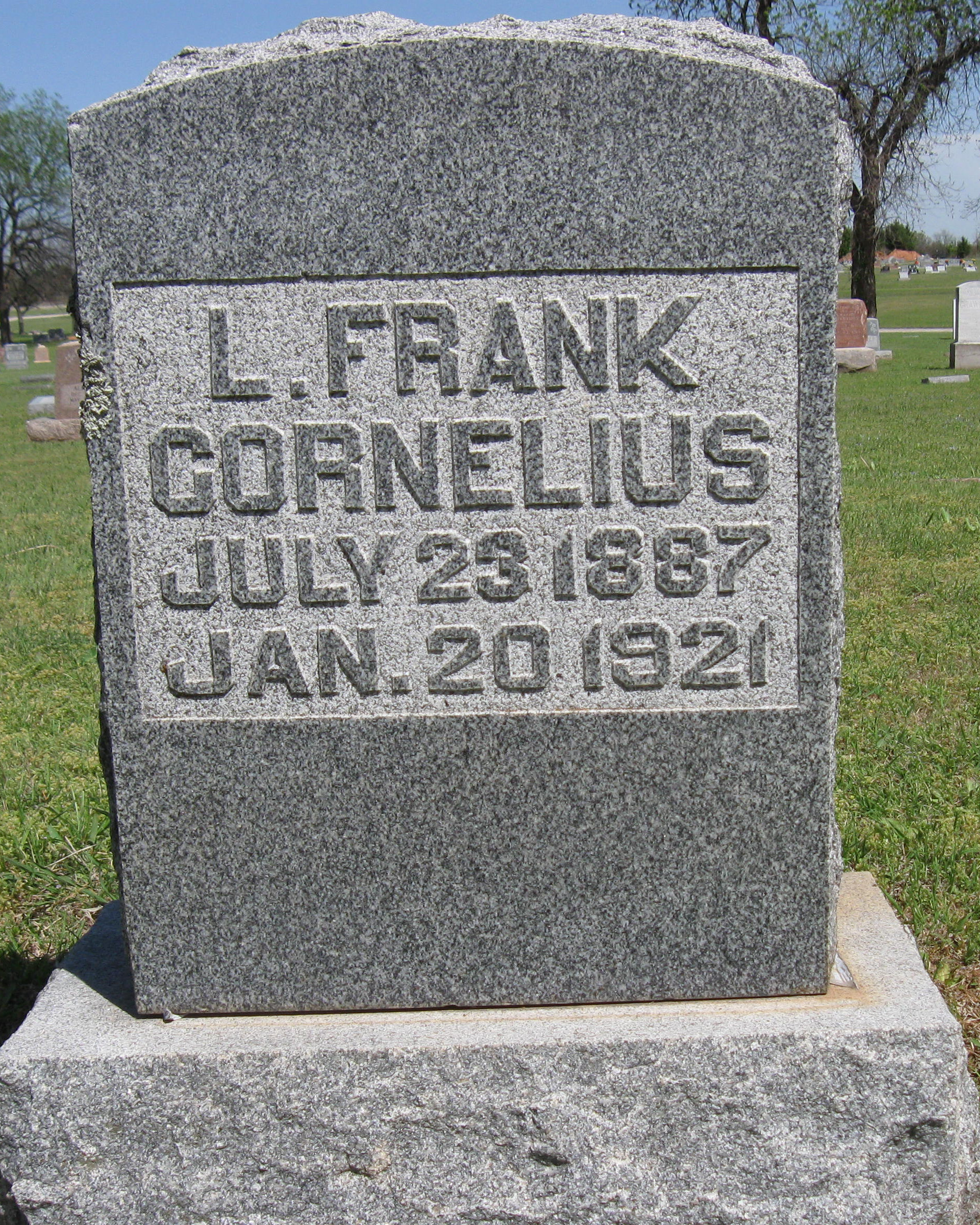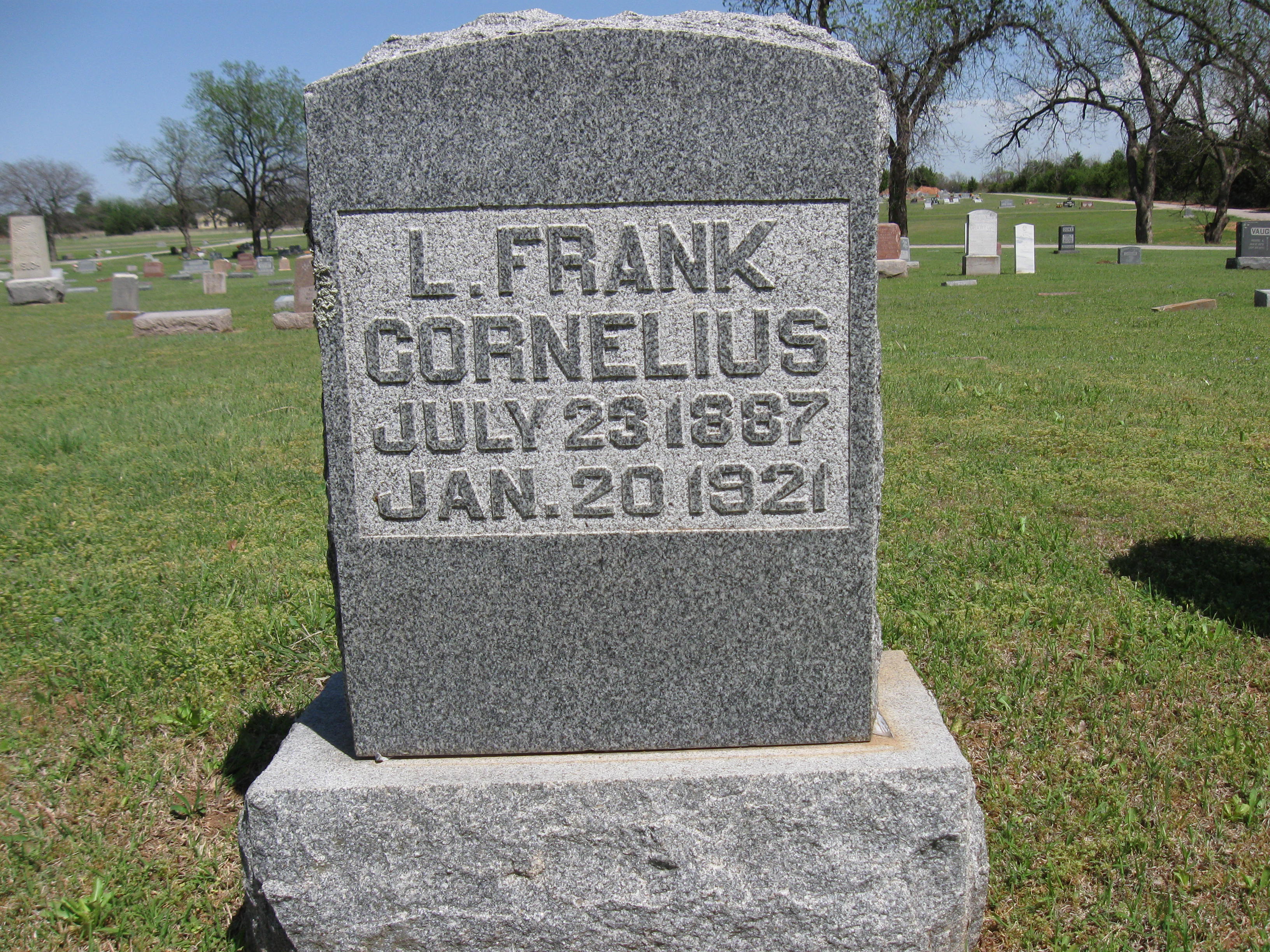 He is buried in Wynnewood, Oklahoma. His brother, Investigator Oliver Holmes Cornelius, died in the line of duty on February 20, 1950.