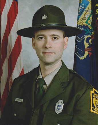 Officer Grove was in the area to investigate reports of ongoing night-time shooting and poaching. He had stopped a suspected poacher just south of Gettysburg National Military Park. As he handcuffed the man, a struggle ensued, and the subject opened fire on Officer Grove with a .45 caliber handgun, striking him four times. Although mortally wounded, Officer Grove was able to return fire, wounding the suspect in the hip. The suspect fled the scene with the handcuffs still on his left wrist.