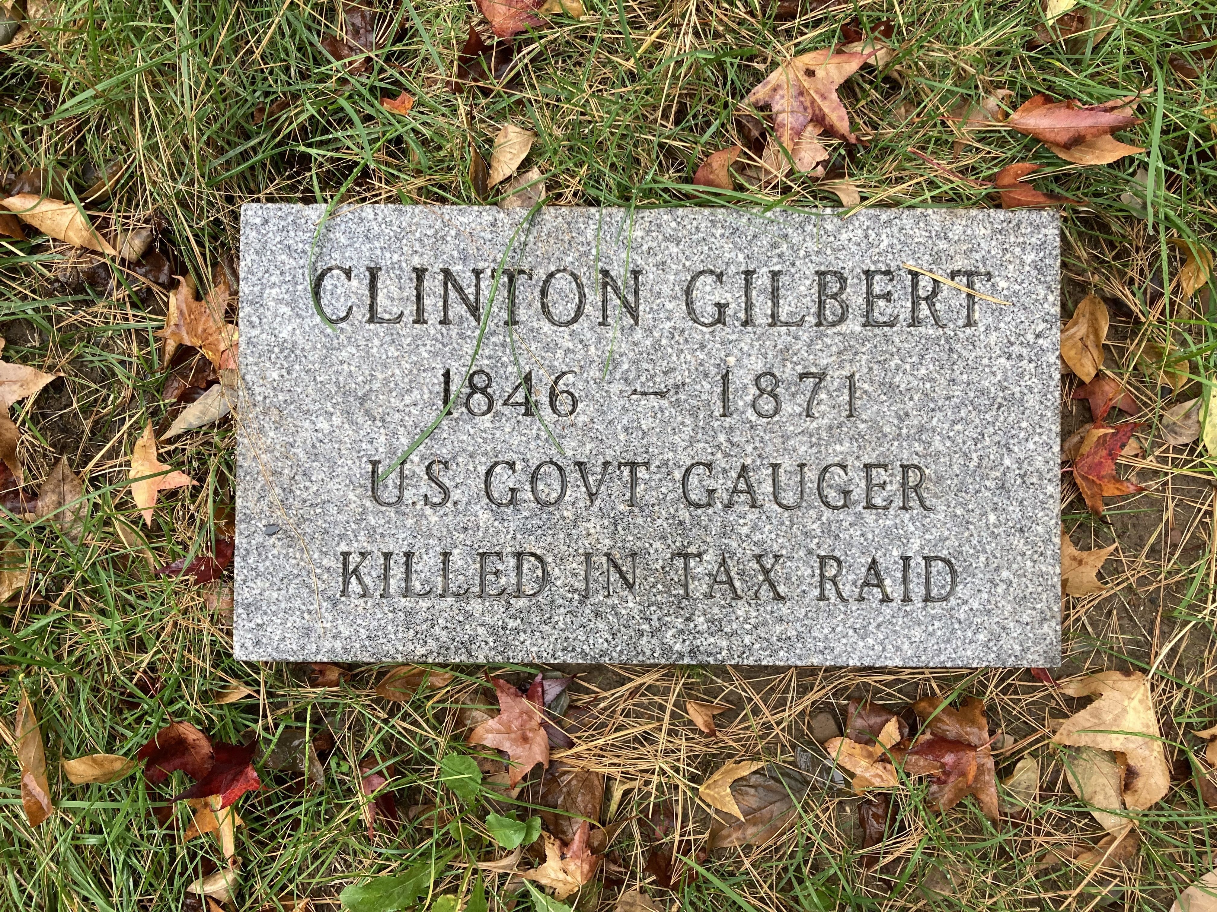 Gauger Clinton Gilbert was shot and killed while raiding several stills near the Navy Yard in Brooklyn, New York, along with approximately 40 other deputy revenue collectors and deputy United States marshals.