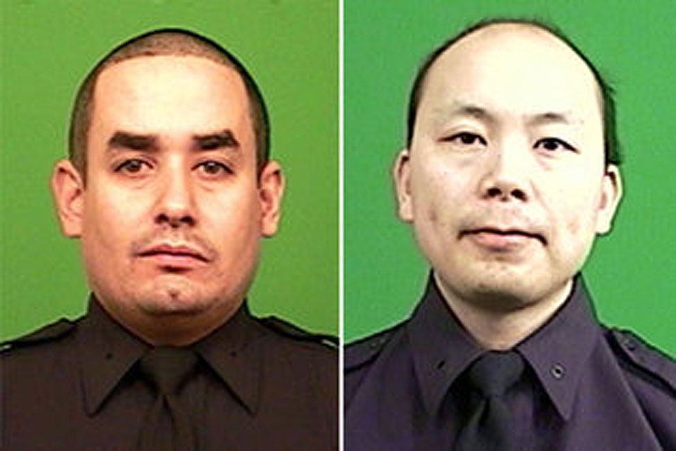 Police Officers Rafael Ramos and Wenjian Liu were shot and killed from ambush while sitting in their patrol car at the intersection of Myrtle and Thompkins Avenues in Bedford-Stuyvesant.