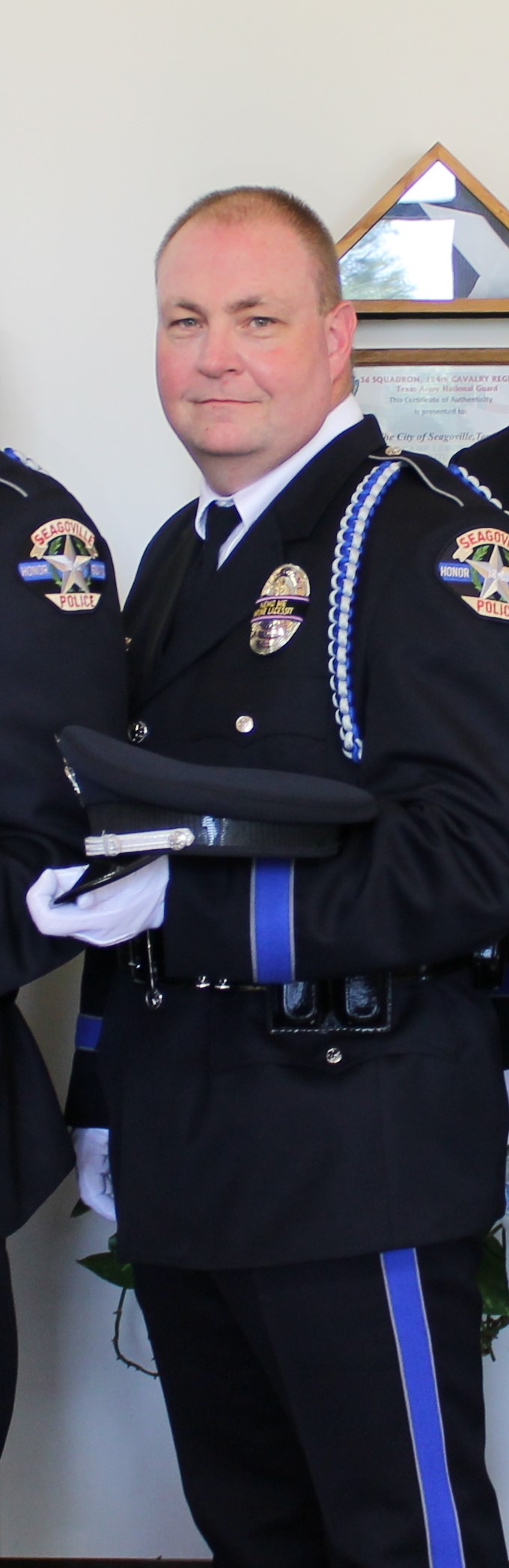 Sergeant David Schmidt died from complications as the result of contracting COVID-19 during a presumed exposure while on duty at the Seagoville Police Department.
