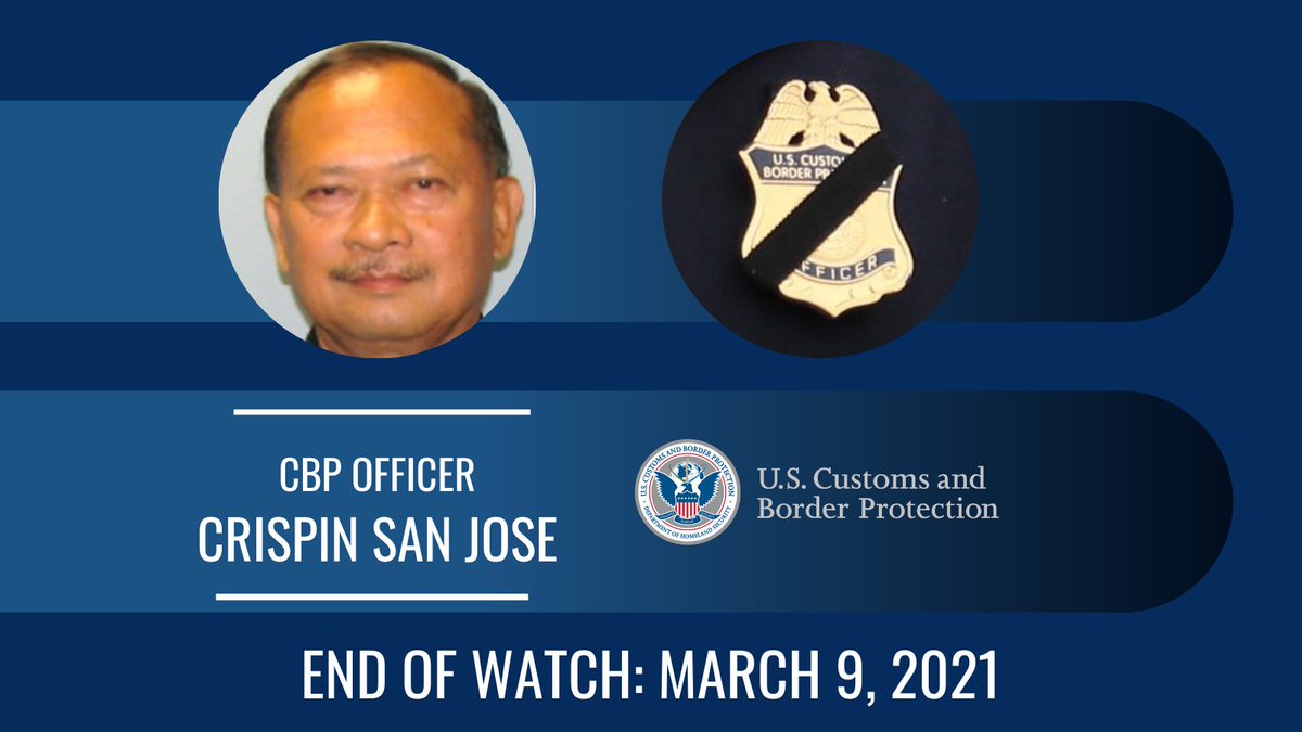 Officer Crispin San Jose died from complications as the result of contracting COVID-19 at the San Ysidro Port of Entry in San Ysidro, California.