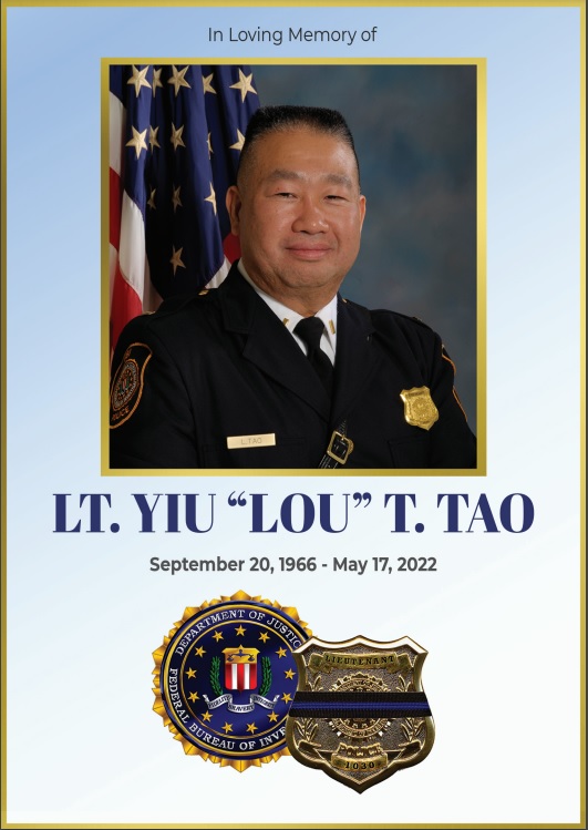 Officer Tao had served with the United States Department of Justice - Federal Bureau of Investigation Police for over 25 years. He is survived by his wife, two sisters, stepdaughter, stepmother, niece, and nephew.
