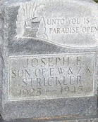 Private First Class Strickler was a United States Army World War II veteran and served with the United States Army Military Police for six months. He received the Purple Heart when wounded in action during the Battle of Okinawa. After several weeks in the hospital to treat his wounds, he was transferred from the 6th Army Division to the 623rd Military Police Unit in Oahu, Hawaii. He was survived by his parents and seven siblings.