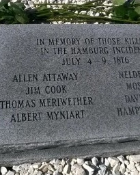 Town Marshal Jim Cook was shot and killed exiting the Hamburg Town Armory during the beginning of a race riot in Hamburg.