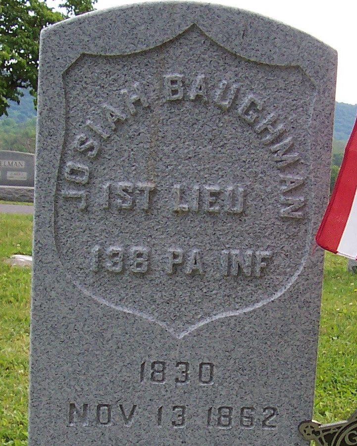 Lieutenant Josiah Baughman succumbed to a gunshot wound he received while attempting to arrest a deserter in Chaneysville, Pennsylvania, on November 11, 1862.