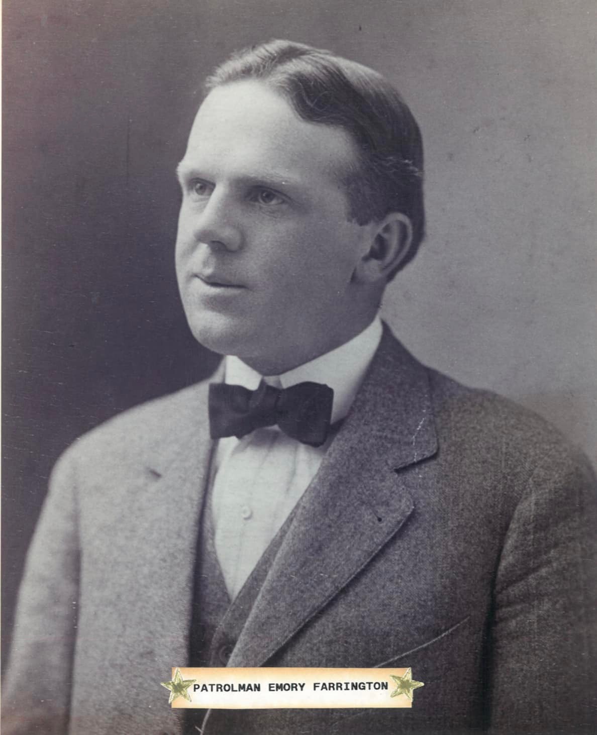 Patrolman Emory Farrington was shot and killed after interrupting several suspects who were stripping a stolen car of its parts in the Blue Hill reservation.
