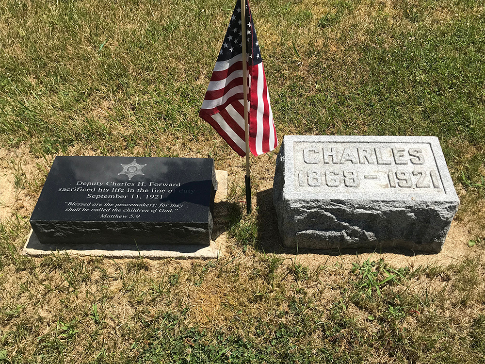 Special Deputy Sheriff Charles Forward was shot and killed while attempting to arrest a man who had stolen a .45 caliber revolver that was considered a war trophy from the American Legion Fair.