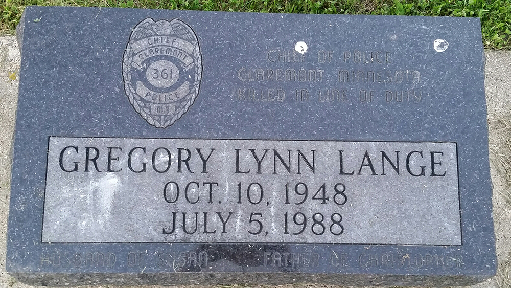 When Chief Lange arrived and began assisting the female victim, two brothers turned on him, and one suspect was able to gain control of Chief Lange's service weapon. The men beat him with a shovel and then fatally shot him before both fled to Missouri, where they were later apprehended.