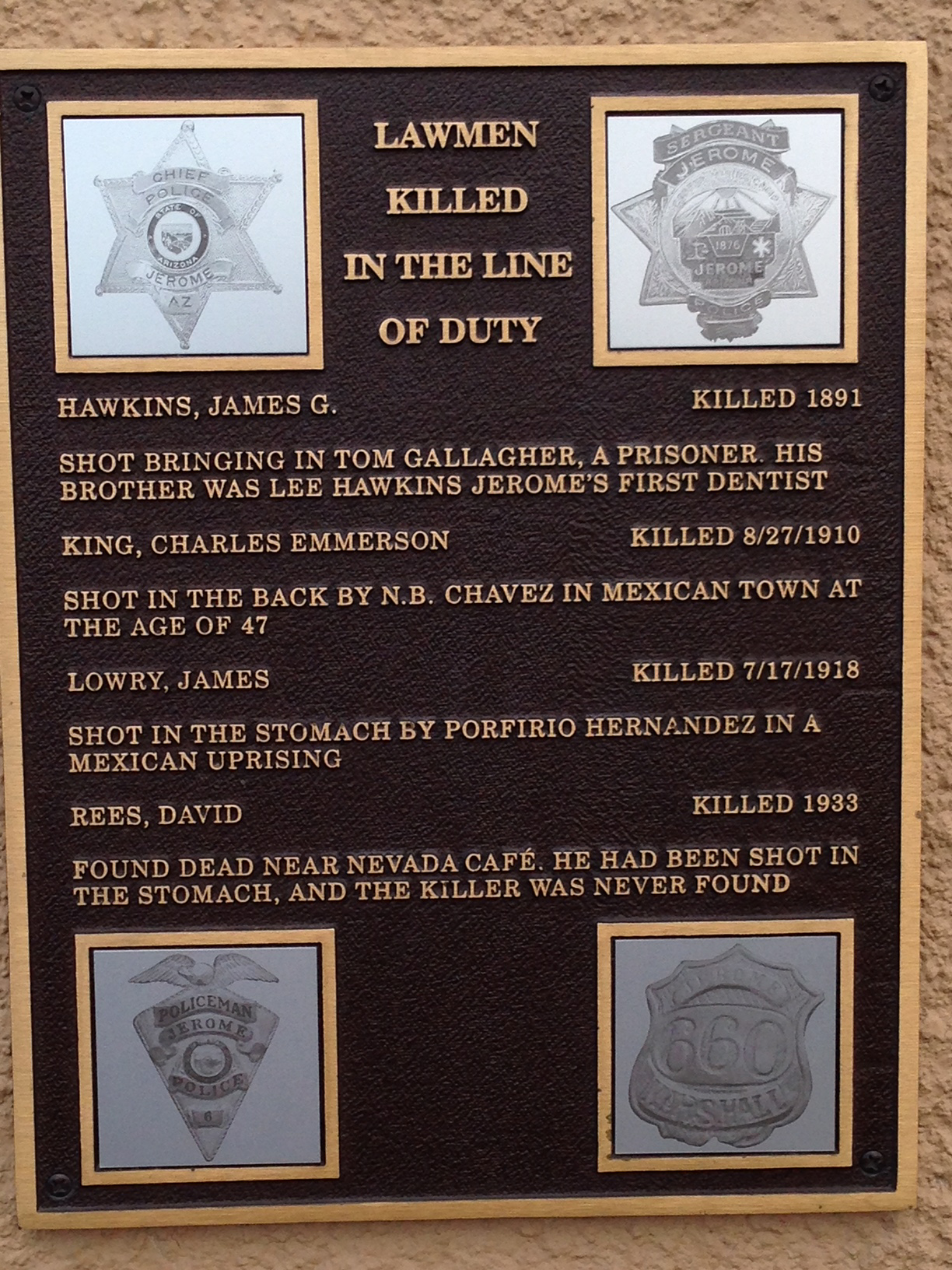 Deputy Lowry was a deputized guard at the United Verde Extension Mine near Jerome. As he was attempting to break up a fight he was shot to death. The shooter fled into the hills and a posse was sent after him. The shooter was later shot by another deputy.