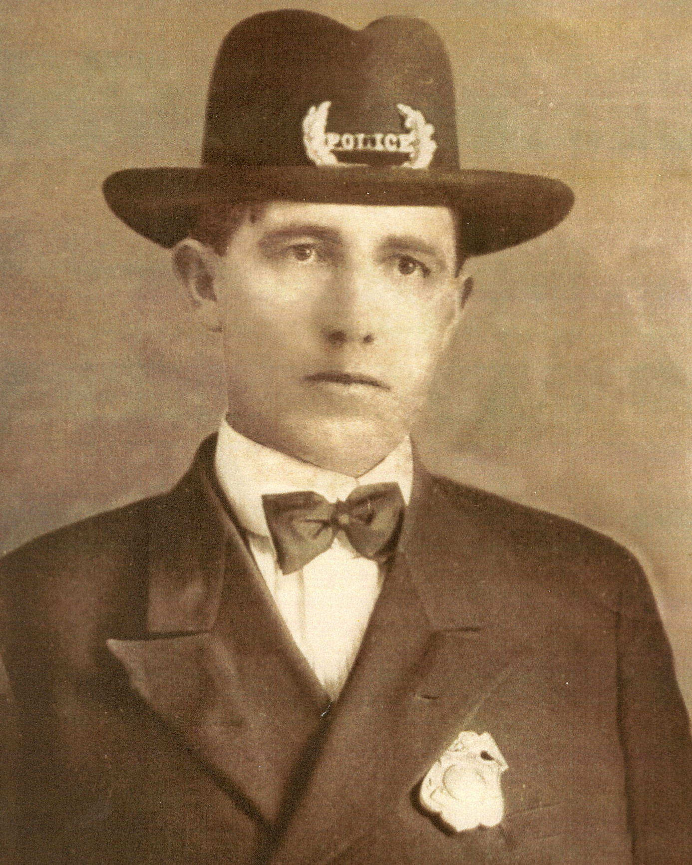 It is believed that he discovered the back door of the building open and then proceeded to the front of the building. With his gun drawn, and his flashlight on, he began looking through the front windows when he was shot once in the head by a .32 caliber round. The suspect(s) fled and were never apprehended.